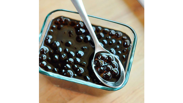 +cho syrup đường đen vào trộn đều với trân châu, để ngấm. Không cho vào tủ lạnh.