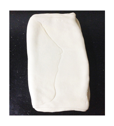 8. Gập 2 cạnh miếng bột lại, chỉnh cho bột vuông vắn ...